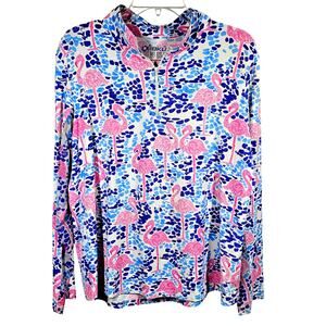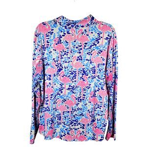 IBKUL Long Sleeve 1/4 Zip Mock Neck Flamingo Print Top Golf Pickleball Size XL