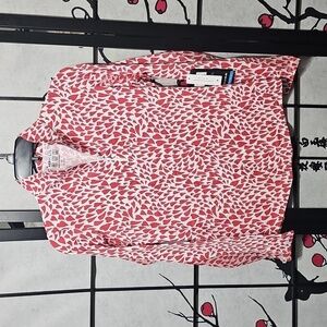 IBKUL Long Sleeve Mock Neck Top Red White Hearts Size XS NWT