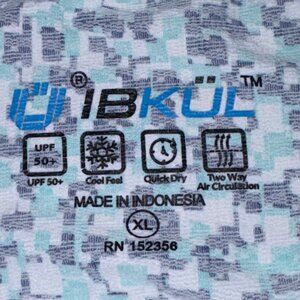 IBKUL Long Sleeve Polo Shirt Mens XL UPF 50 Blue Geo Print Quick Dry