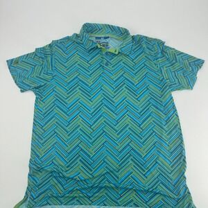 IBKUL Mens Golf Polo Shirt Large Blue Green Pattern Performance Athletic