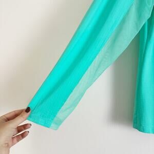 Quarter-zip neckline and mesh panels along the inner sleeves.