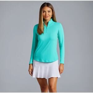 IBKUL Mock Neck Half Zip Long Sleeve Top Jade XL