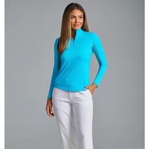 IBKUL Mock Neck Half Zip Long Sleeve Top Turquoise XL