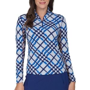 IBKUL Mock Neck Patterned Long Sleeve Zip Top Sonika Size Small NWT