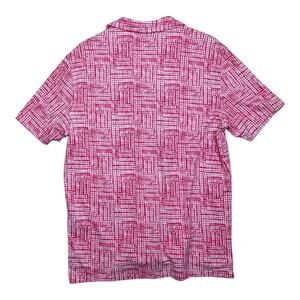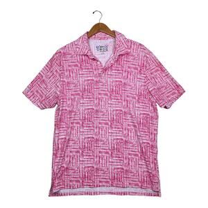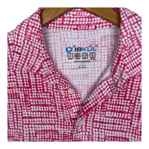 IBKUL Polo Shirt Mens Large Pink White Geometric Print Performance Golf Stretch