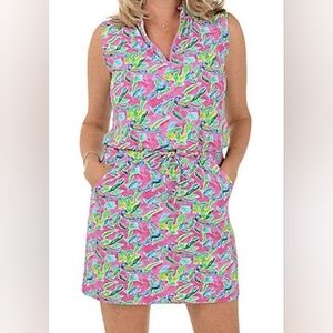 IBKUL Rachel Pink Peacock Bird Sleeveless Drawstring Golf Dress Large Upf 50+