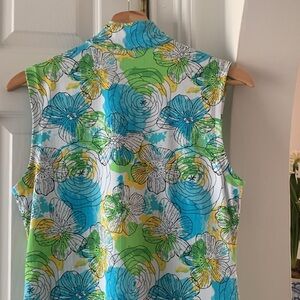 The Paddy print is a fun, sporty statement in IBKULβs breathable, stretch performance fabric. Features a mock neck, sleeveless silhouette, and easy pullover fit.