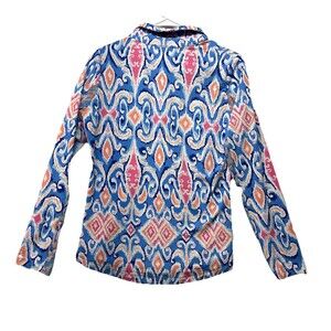 IBKUL Shirt Womens S Ikat Long Sleeve Mock Golf Tennis UPF50 Sunshirt Blue