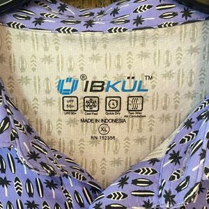 IBKUL Sz XL Purple Patterned Pickleball Golf Tennis UPF 50+ Cooling Surfer Polo