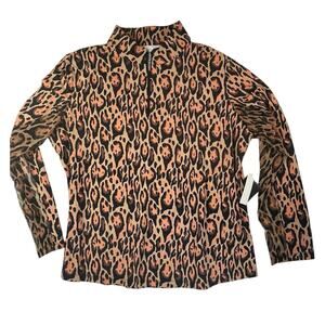 IBKUL Top Womens 2XL Leopard Long Sleeve Mock Neck Golf Shirt UPF 50 Athleisure