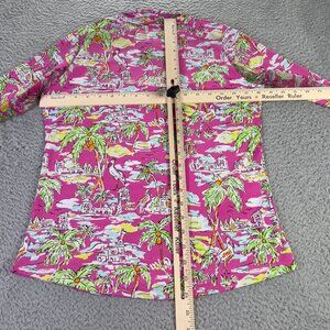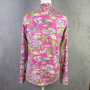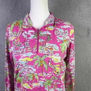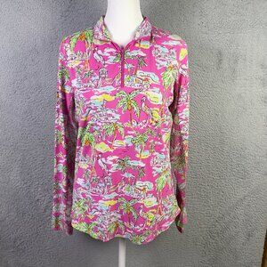 IBKUL Top Womens Small Pink Island Print 1/4 Zip Mesh Performance Golf UPF 50+