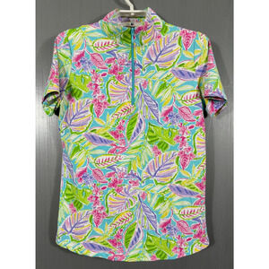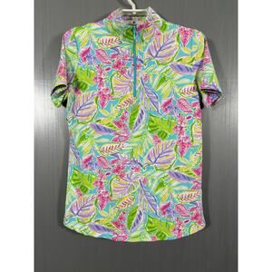 IBKUL Top Womens XS Mock Neck Floral Short Sleeve Nylon Blend