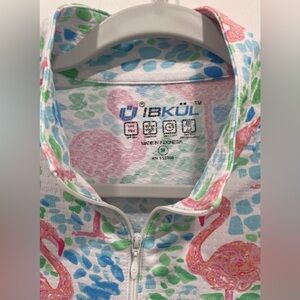 IBKUL Woman Top Size M Multicolor Flamingo 1/4 Zip Long Sleeve UPF 50+ Pullover
