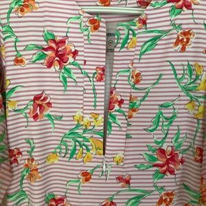 Resort wear inspired. Sun protective clothing that allows you to stay cool and protected. Sleeves have mesh on the underside.