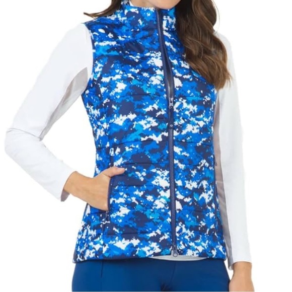 🌻 IBKUL Women's Athleisure Polartec Power Fill Blue Camo Print Quilted Vest sz S