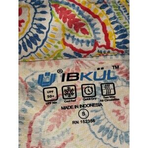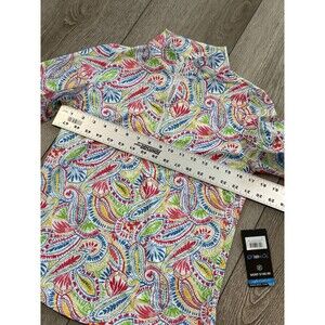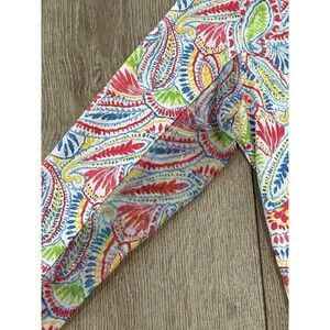 Vibrant paisley design. Long sleeves. Lightweight and breathable. Perfect for active wear.
