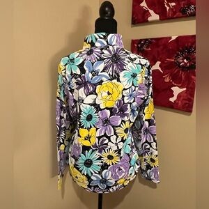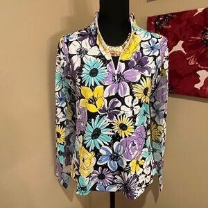 IBKUL Women's Medeline Print Long Sleeve Mock Neck Quarter Zip Top, size M