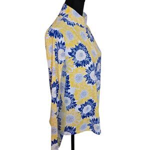 IBKUL Womens Sunflower Print UPF50+ Long Sleeve Athletic Top Yellow Blue Large
