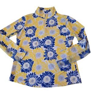 IBKUL Womens Sunflower Print 1/4 Zip UPF50+ Long Sleeve Athletic Top Yellow Blue Large