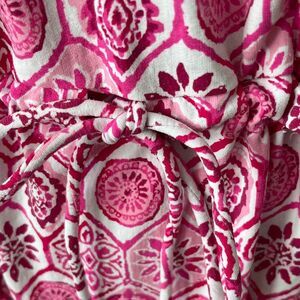IBKUL Pink and White 1/4 Zip Drawstring Waist Dress Floral Medallion SZ L