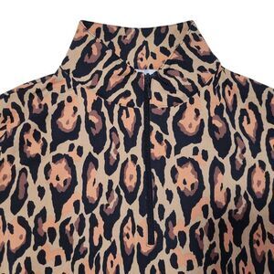 IBKUL Top Womens XS Leopard Long Sleeve Mock Neck Golf Shirt UPF 50 Athleisure