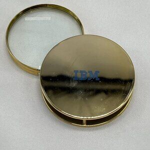 IBM Gold Magnifying Glass Paperweight Desk Vintage Rare 2.75 Inches