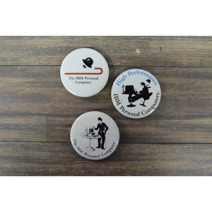 IBM Personal Computer Button Pin Lot of 3 Charlie Chaplin Promo 1980's Vtg