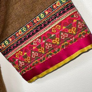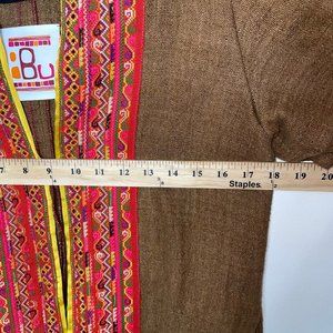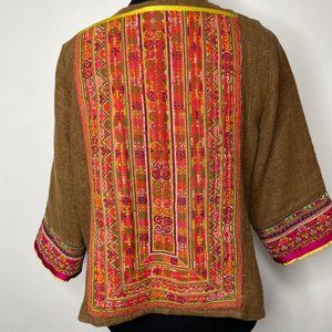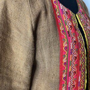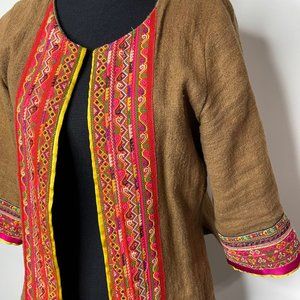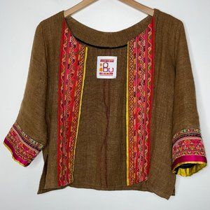 IBU Movement Embroidered Cropped Linen Brown Jacket Handmade