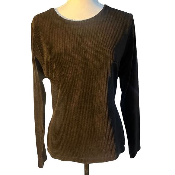 Long sleeve cotton blend classic basic top scoop neck size medium This is in execellent condition with no , rips ,stains or tears. Measurements are in the photos, measurements are approximate and are taken laying down