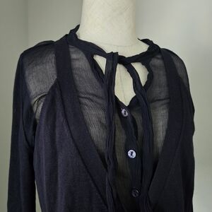 IBlues Navy Sheer Silk Cashmere Button-Up Cardigan Size L