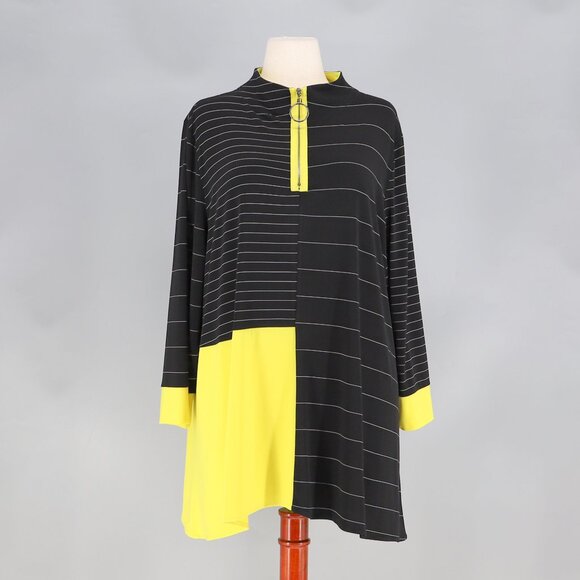 IC BY CONNIE K Colorblock Pinstripe Quarter Zip Tunic Top Yellow Black Size XXL