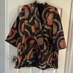 IC BY CONNIE K Geometric Circle Print Asymmetrical Lagenlook Jacket artsy fun