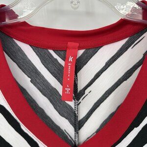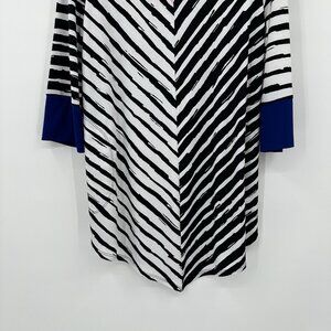 IC BY CONNIE K shirt top tunic striped knit 3/4 sleeve pockets v neck LARGE