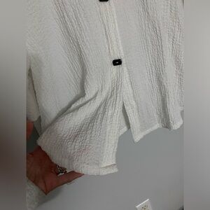 Like new. Great pre loved condition. Beautiful buttons on both sides. 3/4 length shirt. Lightweight. PTP-22, length-30”
