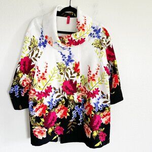 IC by Connie K womens size large floral print swing jacket with cowl neck and one button closure.