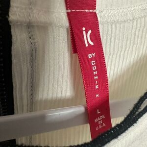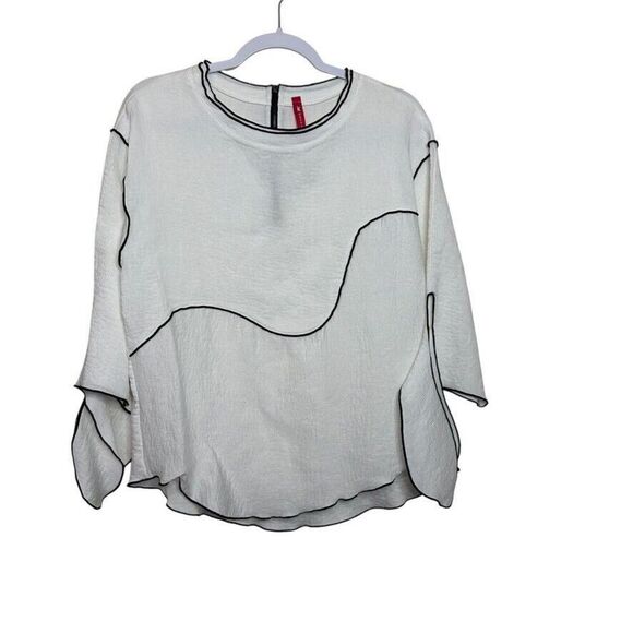 IC By Connie K Textured Tie Sleeve Zip Blouse Top Womens L White Black Lagenlook