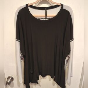 IC By Connie K Women's Black & Gray Artsy Slouchy Asymmetric Tunic Top Sz 1X