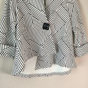 IC COLLECTION Asymmetric One-Button Blazer Jacket Textured White Black Lagenlook