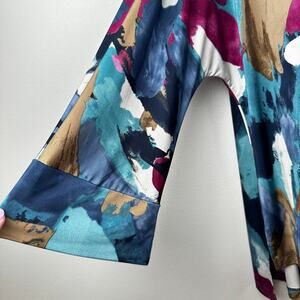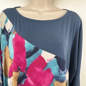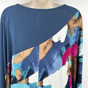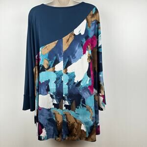 IC Collection Blouse Top Liquid Knit Abstract Watercolor XL Art to Wear Artsy 3/4 Sleeve Bell Sleeve Drop Shoulder