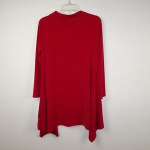 This IC Collection long sleeve top is a must-have addition to any wardrobe. Made in the USA with a polyester blend material, this red knit blouse features a collared neckline, casual sleeves, and a relaxed fit. Perfect for any occasion, whether it's for travel, parties, workwear, or casual wear, this tunic style blouse will make you stand out. With its solid pattern, pullover closure, and stretchy fabric, this blouse is comfortable and versatile. It's available in size XS and is suitable for all seasons. Add this designer top to your collection and elevate your style game.