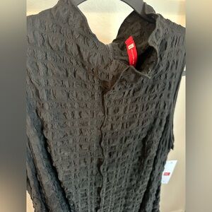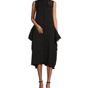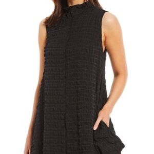 Textured Bubble Check Woven Mock Neck Sleeveless Pocketed Swing Waistless Midi Dress