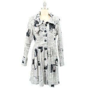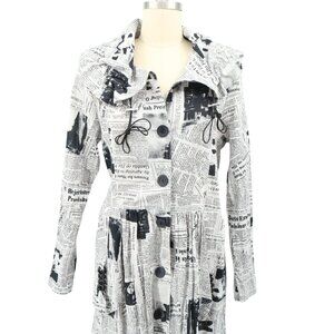 IC Collection by Connie K News Print Newspaper Chain Detail Button Front Dress L