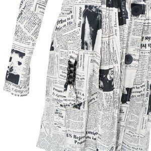 IC Collection by Connie K News Print Newspaper Chain Detail Button Front Dress