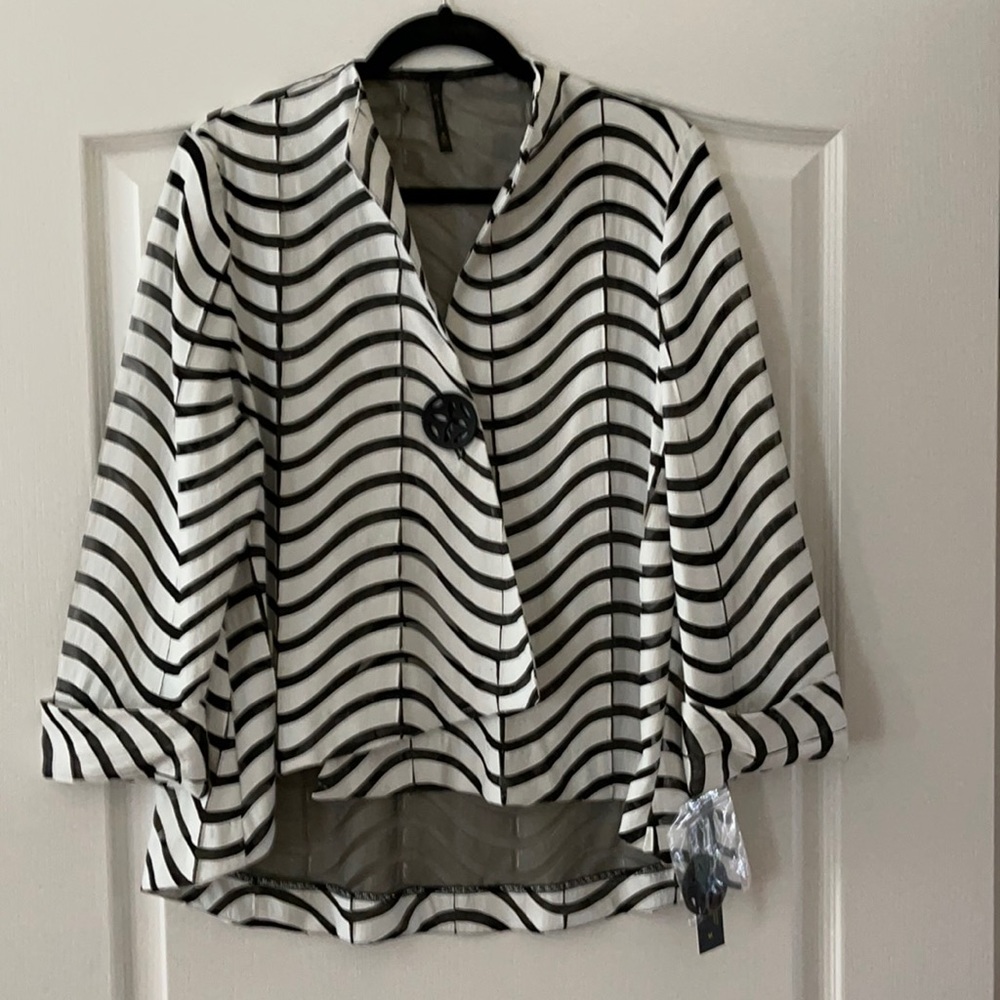 High Neck Asymmetric One Button very thin Jacket. From IC Collection, this jacket features: