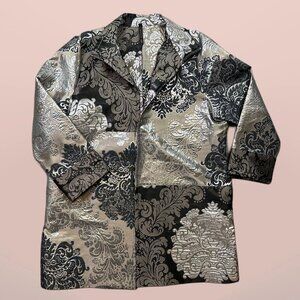 IC Connie K Jacket X-Large Tapestry Artsy Open Front Silver Metallic Patchwork