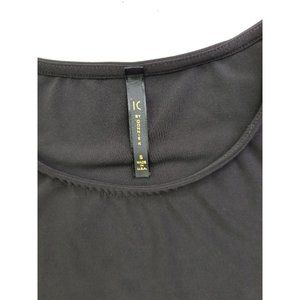 IC Connie K Women's S Black Tunic Silver Faux Clips 3/4 Sleeves Mesh Lagenlook