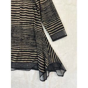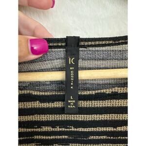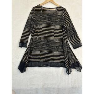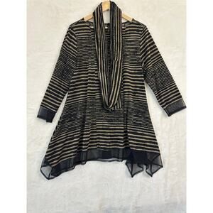 IC by Connie Black Stripe Top L Flowy Hanky Hem with Scarf