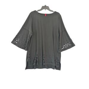 IC by Connie K Black 3/4 Eyelet Sleeve Tunic Top XL Mature