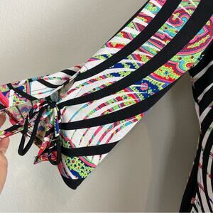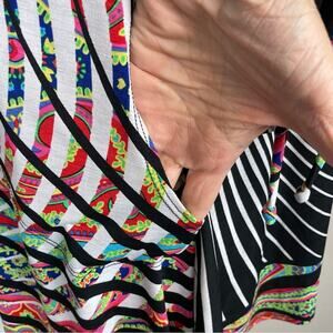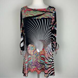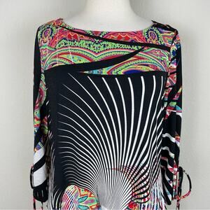IC by Connie K Black Multi Color Floral Paisley Stretch Knit Top Medium