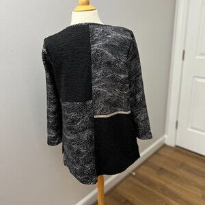 IC by Connie K Black Silver Mixed Media Tunic Top Sz S